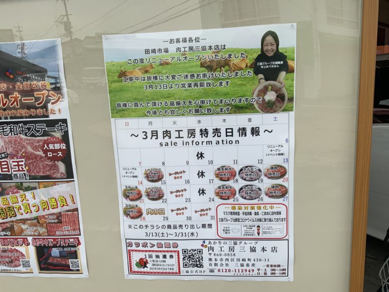 田崎市場にある肉の直売店「三協本店」が、今月リニューアルオープン。自社で育てたあか牛が自慢のお店です。毎日日替わりで特売セールをやっているのですが、以前より開催している毎月29日の「肉の日」がとにかく安いんです!リニューアル後初の肉の日を前に新しいお店を見に行きました!