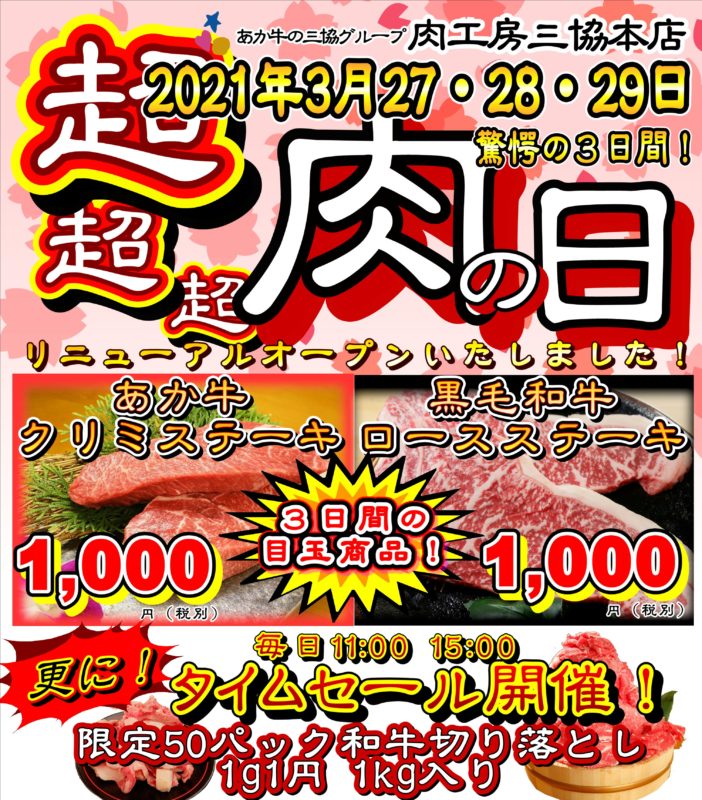 今回は、なんと肉の日が3日間。