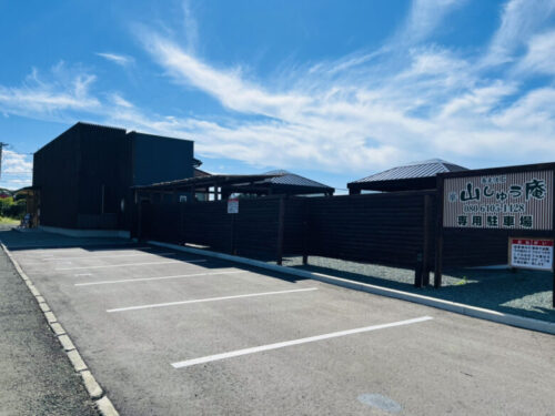 店の横に広い専用駐車場があるため、車やバイクはこちらに停めることができます。