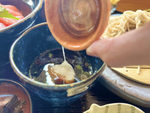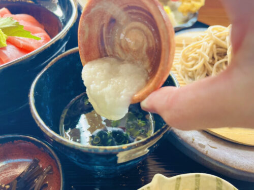 そばつゆに山いもを入れて味変!(この味変はオススメですよ)