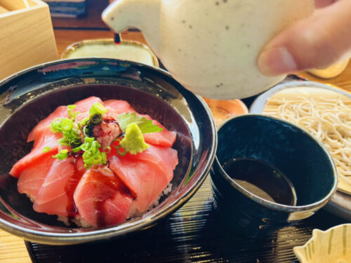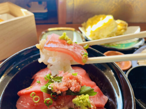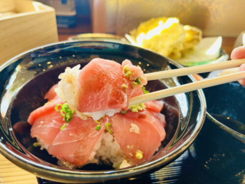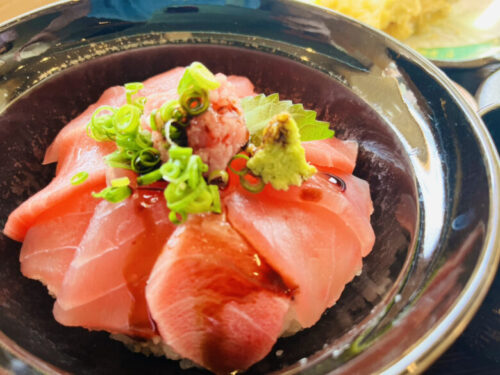 こちらは、マグロの赤身とトロが交互にのせてある「紅白丼」。