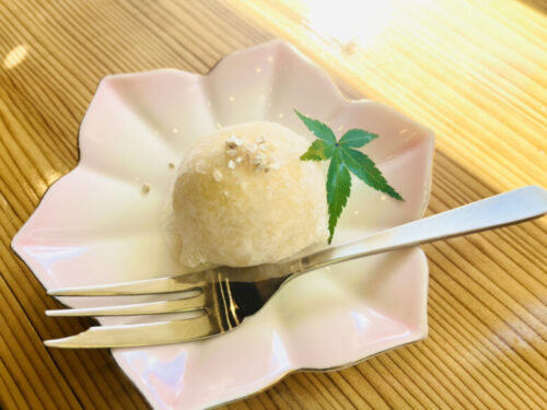 最後は季節ごとに変わる「デザート」つき。この日はそばの実たっぷりの「そばアイス」。ちなみに次回は「栗饅頭」なんだとか。いつ来ても楽しみですね。