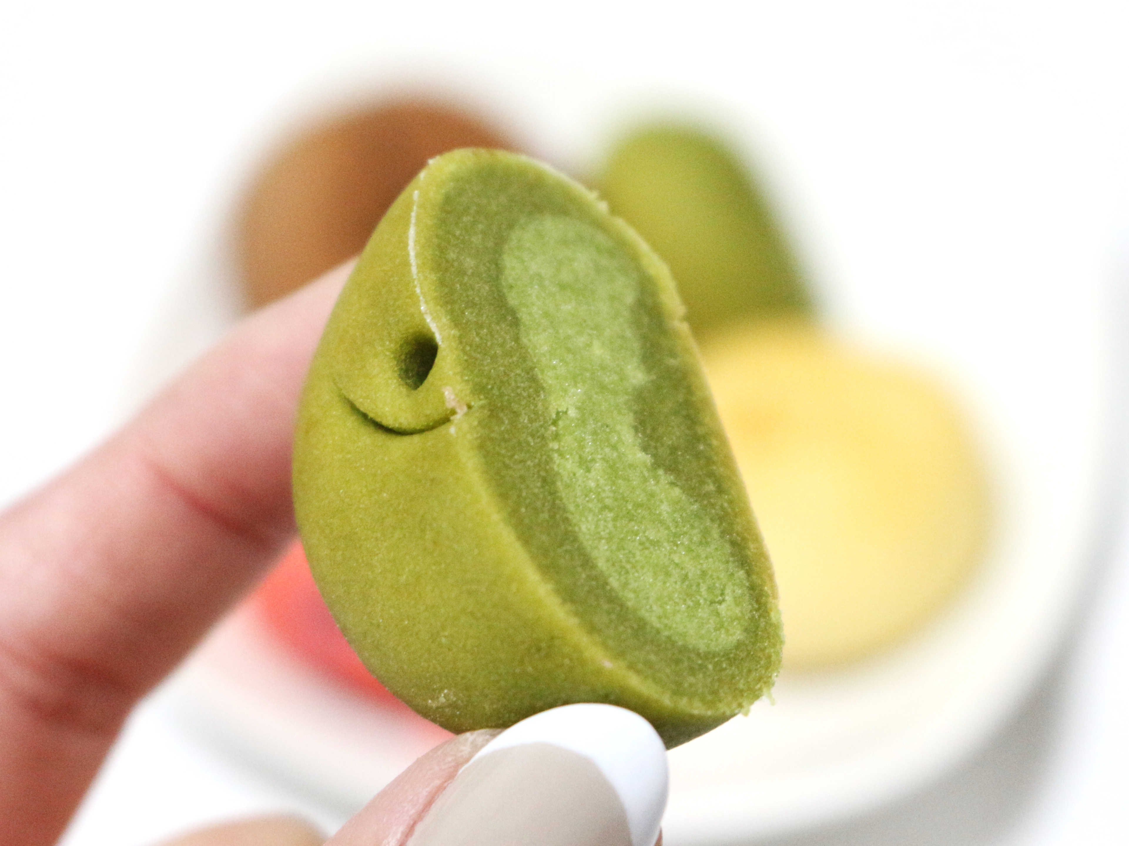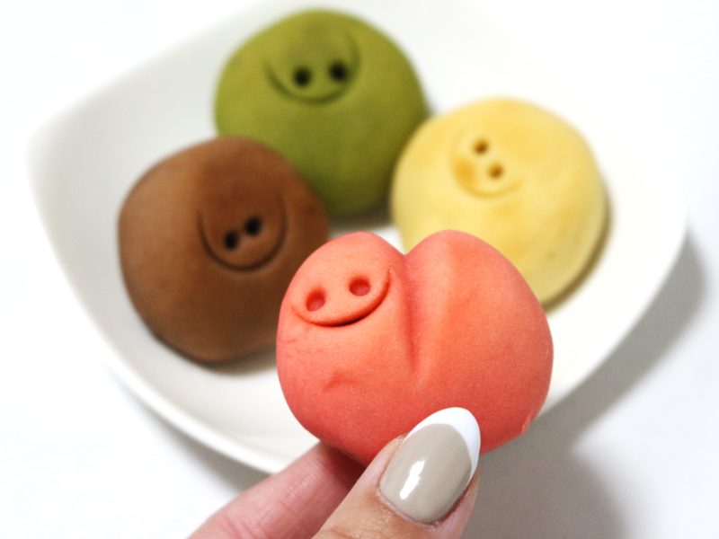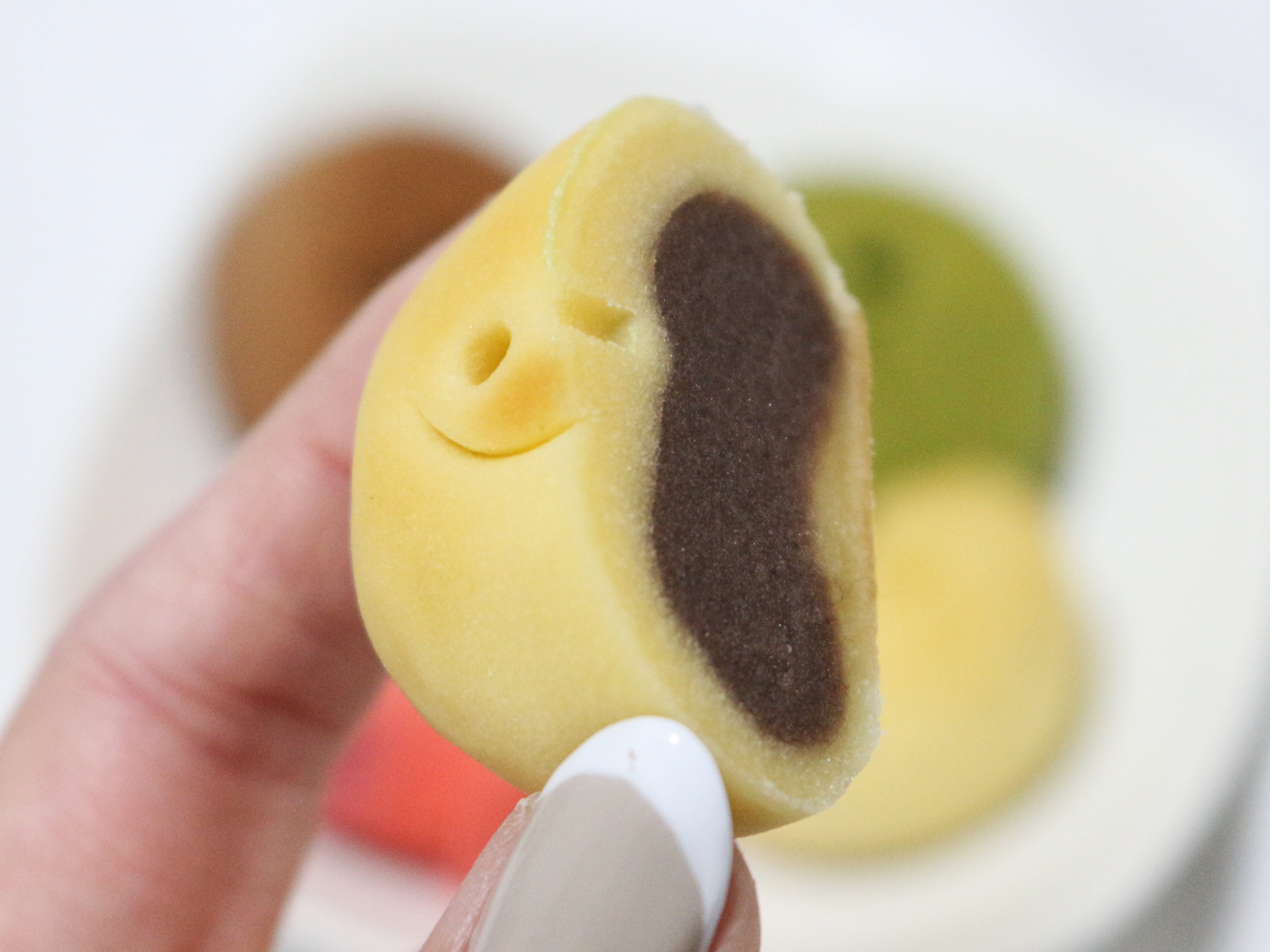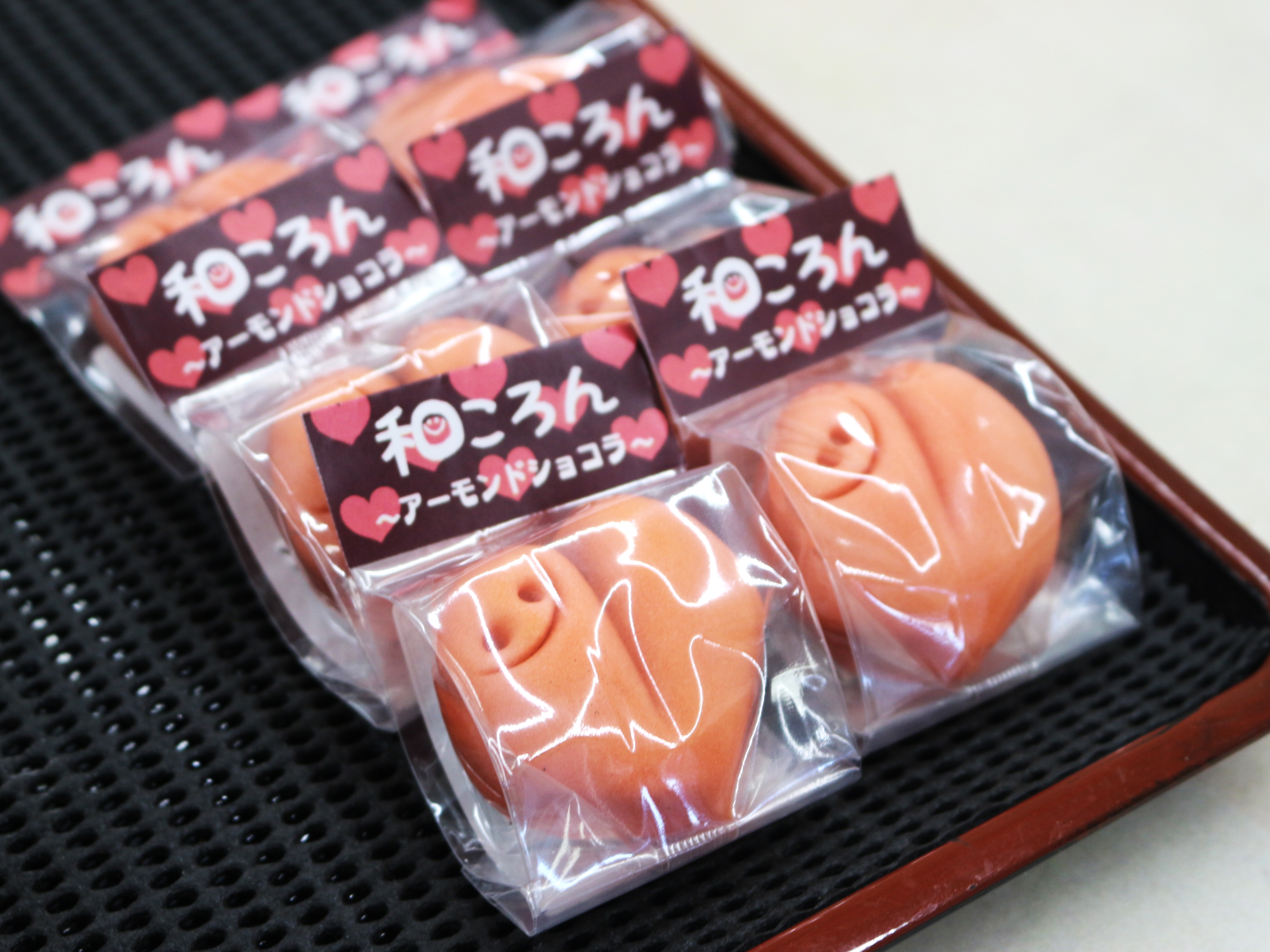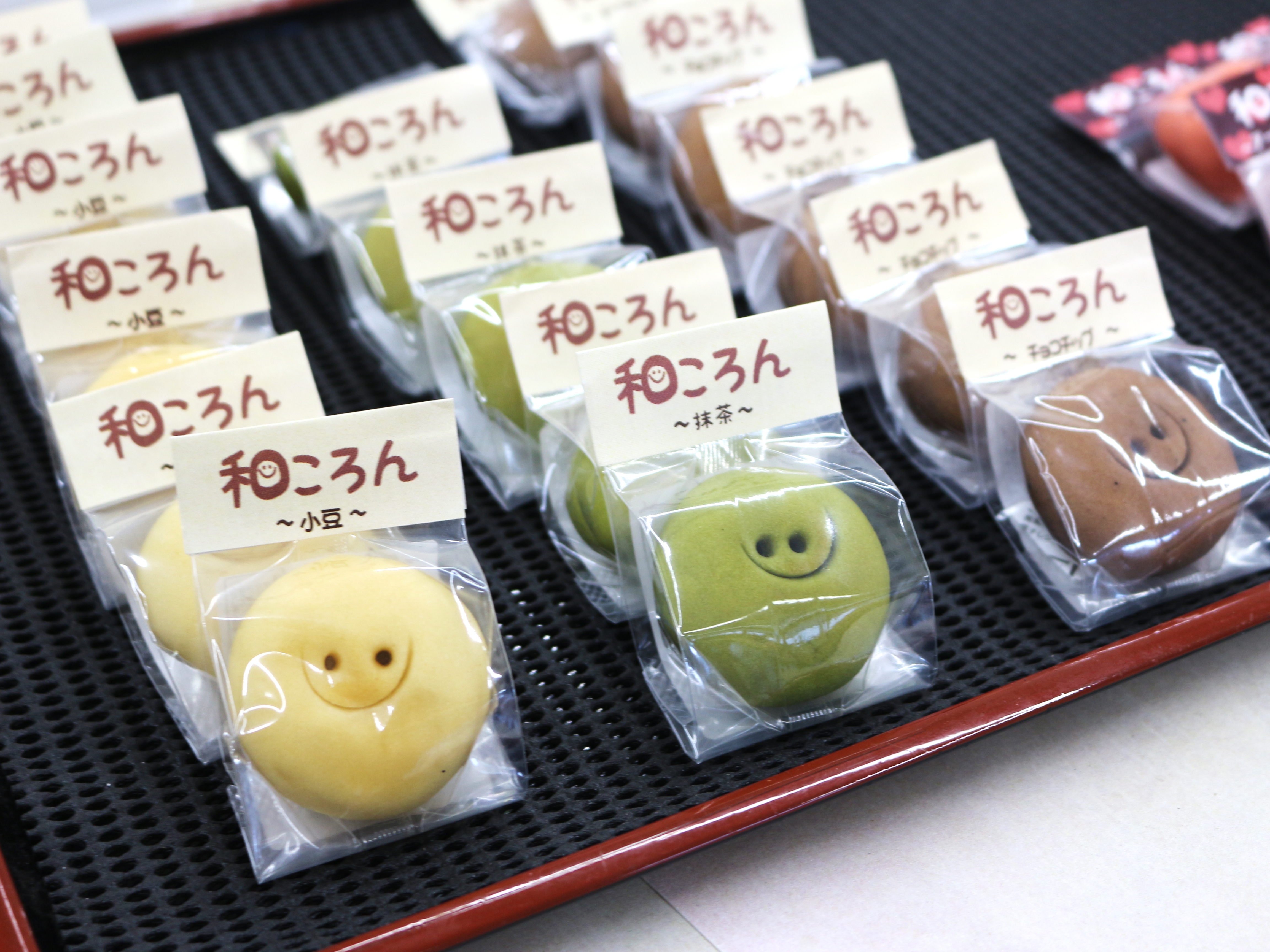 店内を見ていて目に入ったのがこちら。和菓子に顔がついている!