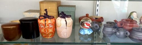 玄米茶やお抹茶の他、茶器や茶道具の取り扱いもあります。