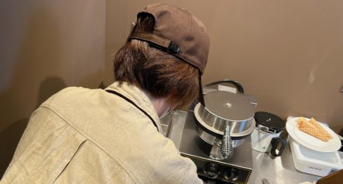 トッピングのワッフルはお店で焼いていらっしゃるので、ワッフルの良い匂いがしてきたんですよ。