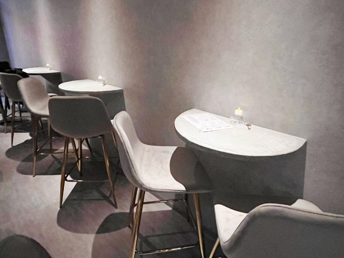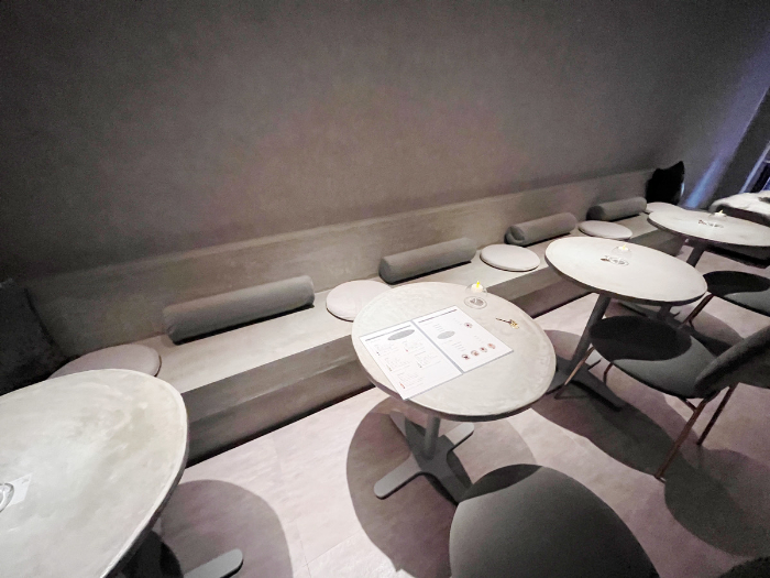 淡いグレーを基調とし、アクセントでゴールドが使われています。無機質ながらも高級感がある空間(おかしな表現ですがお許しください)は非日常な雰囲気を醸し出しています。