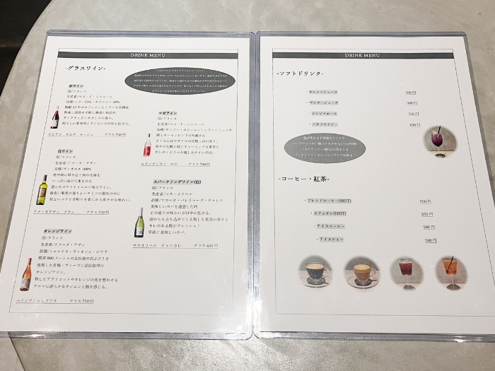 ドリンクはコーヒー・紅茶に加えて、アルコールメニューも多数。