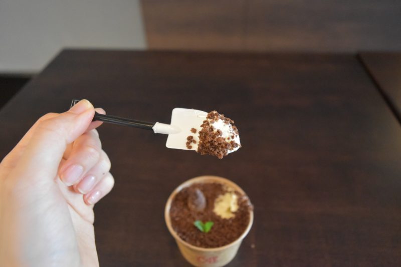 見た目は本当に植木鉢!!インスタ映えする可愛いスコップスプーンでいただきます!