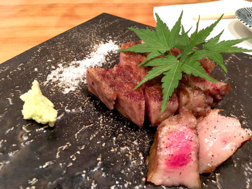 もちろん魚介以外も絶品で、黒毛和牛の希少部位イチボなども。旨味たっぷりで、外側にしっかり火が通っていて中はレア。絶妙な焼き加減で、一口噛みしめるたびに口の中に味が広がります。