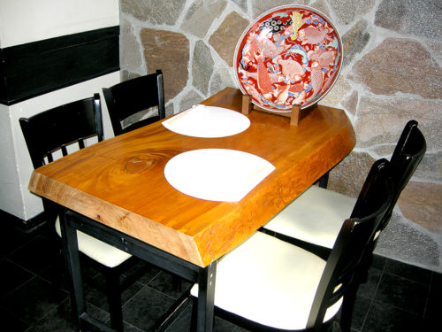 和風な店内にはテーブル席とカウンター席が並び、ジャズが流れています。