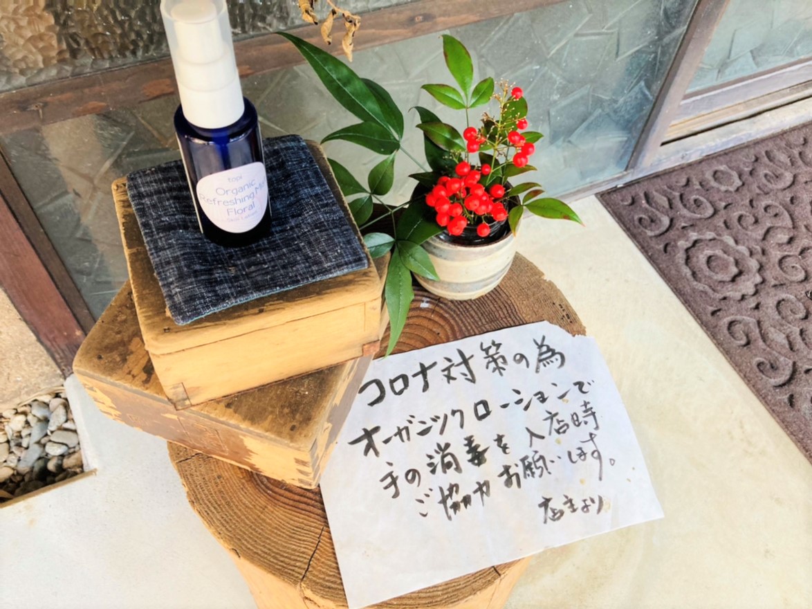 流石、自然食レストラン!オーガニックローションで手の消毒をします!