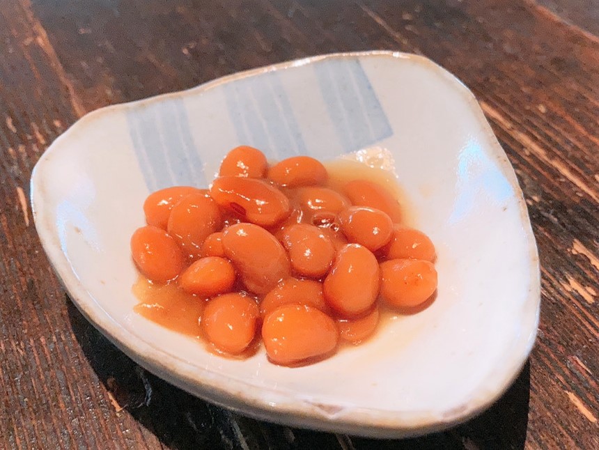 無農薬無肥料で、オーガニックのお砂糖で煮たざぜ豆が出てきました。優しい甘さで美味しい!早速おもてなし力高い。
