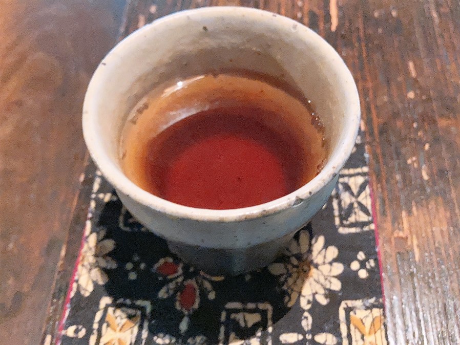 着席すると、まず無農薬無肥料で10時間焙煎した玄米茶と