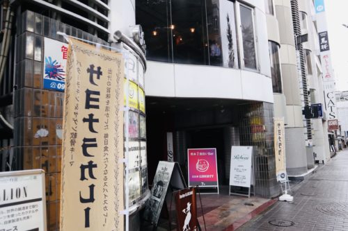 気になる旗はこちら。場所は鶴屋方面から下通りを歩いて文化堂レコード店たばこ販売の横断歩道を渡って左です。