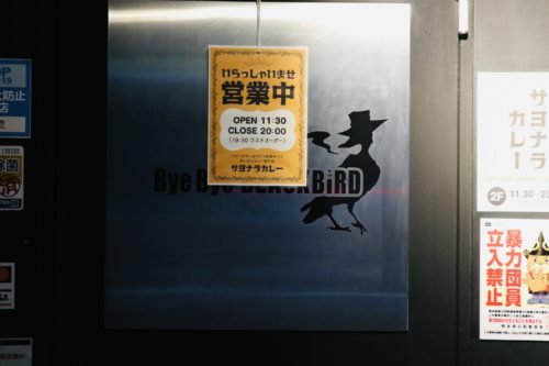 Bye Bye BLACKBIRDという錆びたおしゃれな看板があります。実はこのBye Bye BLACKBIRDというBarの中に「サヨナラカレー」はあります。