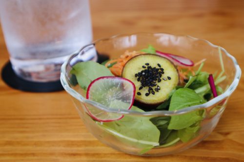 まずはサラダを頂きます。(サラダ+ドリンク付き)お芋美味しい!そしてカシューナッツが入っていて、凝ってるサラダです。