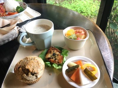 マフィンには紅茶の茶葉がたくさん入っていて、上品な香りで優しい味!そして、この日のスープはきのこのポタージュ。小さく刻まれたきのこがたっぷり入っていて、これがまた絶品でした!
