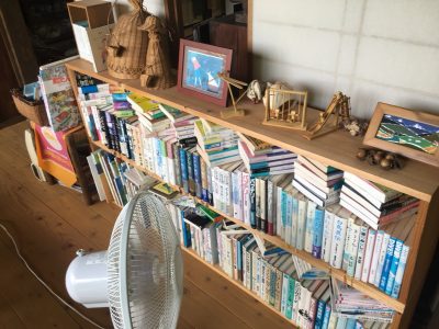 窓の横にも本棚。