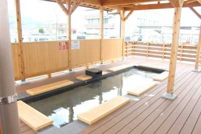 外のテラスには足湯もありました!こちらは無料でできるそう!なんとも気持ちよさそうですね!
