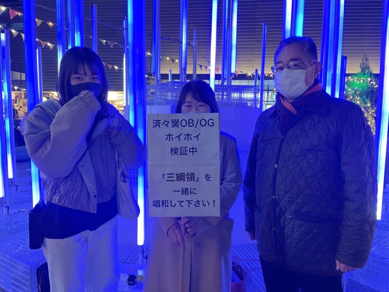 「濟々黌OBの方いらっしゃいませんか!三綱領を一緒に唱和して下さい!」