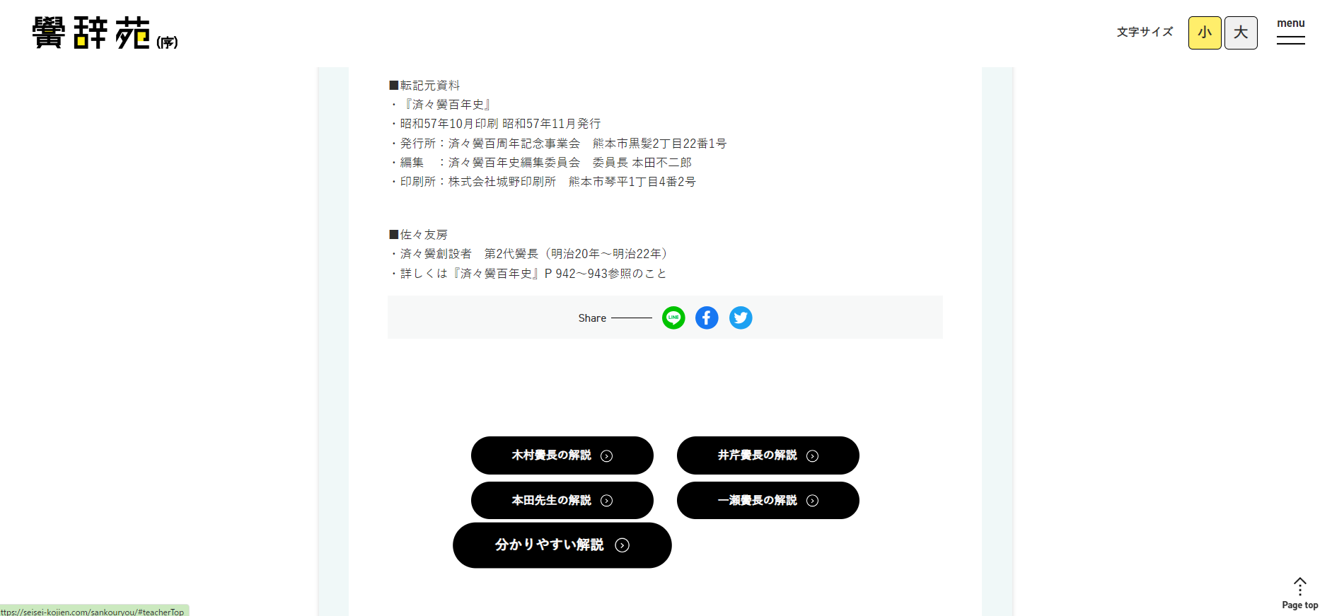 「いえいえ、濟々黌創立140周年記念のサイトです。濟々黌の事が丸分かりにあるから、広辞苑をもじって黌辞苑(こうじえん)」