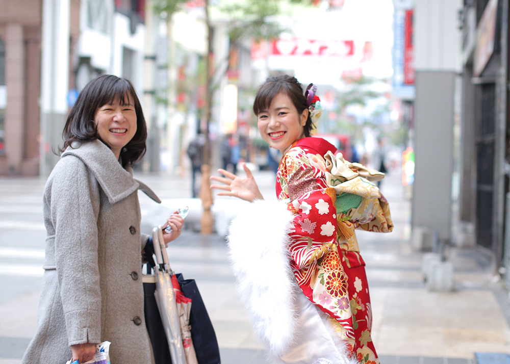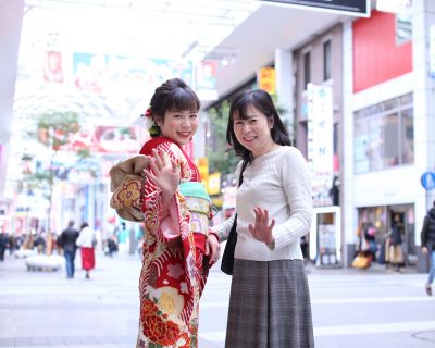 林田さん「そうよ~昔みたいに当日じゃないから、バタつかずにも済むし。でも早めに予約しとかんと、希望する着物とかね、成人式当日の支度の時間とか、いい時間帯が押さえれんけん!あと景品とかもあるとよ」