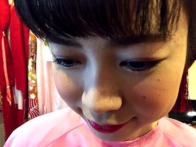 着物が赤なので下まぶたの真ん中に置いた、差し色の赤がポイントです!