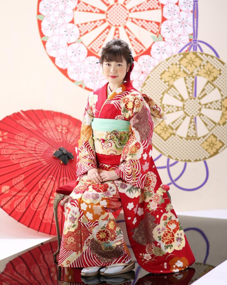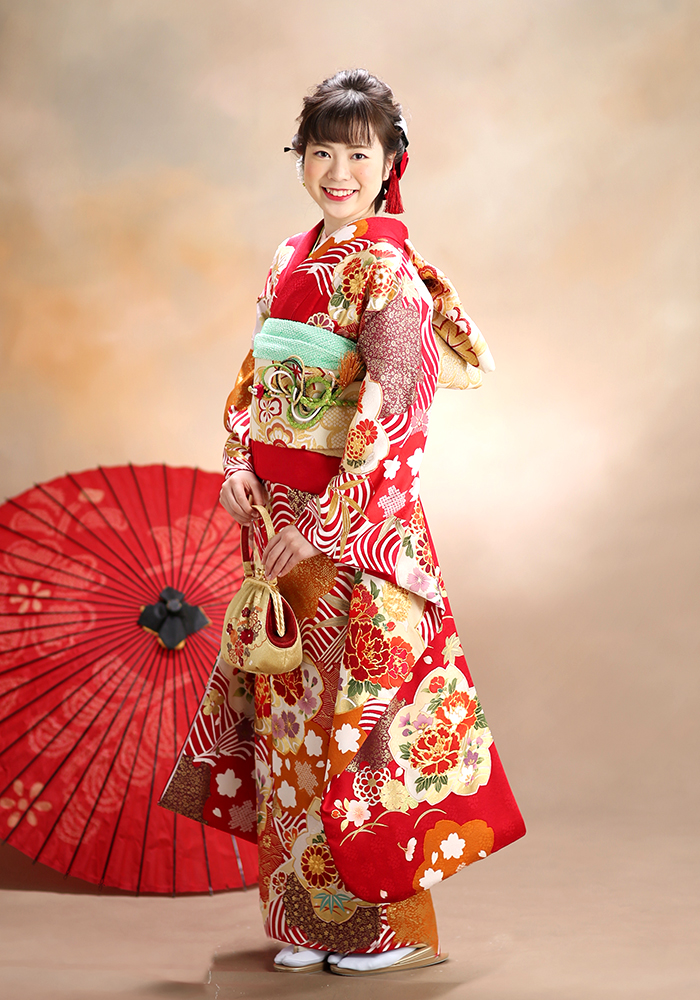 一番お気に入りの赤い振袖で、いってらっしゃい!