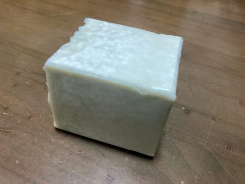 使うまで1か月も待てない!という方はこんな石けんも作れます。色とりどりのキューブを入れて固めただけ。冷やすのを合わせて20分程度で作れましたよ。こちらの石けんや宝石石けんなどは、固まったらすぐに使えるし、簡単で楽しいので子どもにもオススメ。