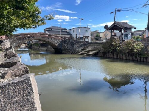 宇土市指定有形文化財である船場橋の近くにあるお店で、歴史を感じさせてくれる石橋の風景も情緒があります。