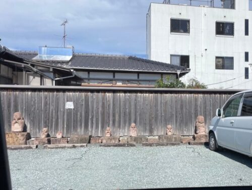 駐車場には、お地蔵様がたくさん!台数が限られているため、満車の場合はお店にご連絡をお願いいたします。