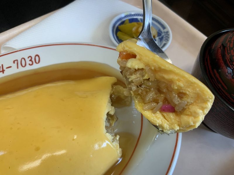 しかし、あえて言いたい。「しょう油オムライス」もいいけれど、「あんかけオムライス」を忘れることなかれ。