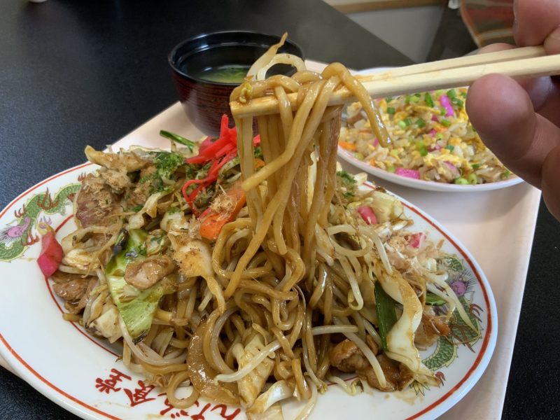 そして、「せんだん食堂」はオムライスだけではありません。他のメニューもボリュームがすごいんですよね。麺類も食べたいなー、焼チャンポン美味しそうだなー、でも量的に足りるかな―と思っていると「特別に半チャーハンつけてあげるよ」とメニューにはない半チャーハンセットにしてくれました。