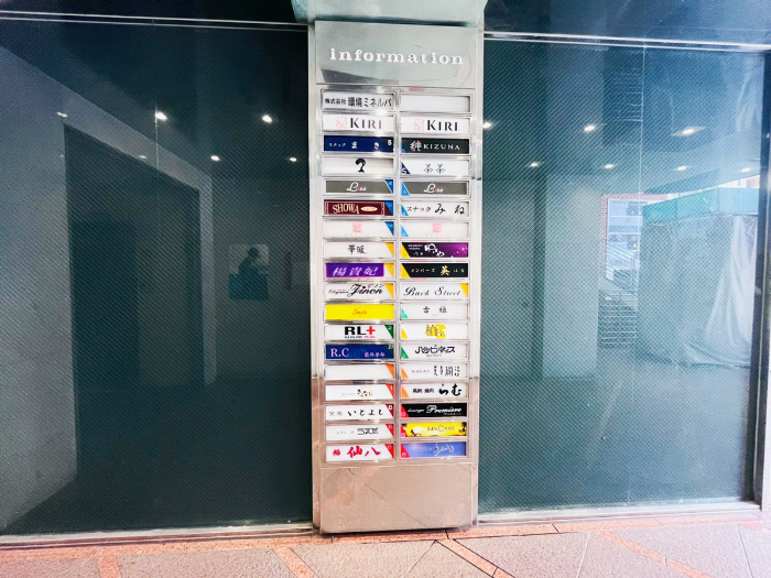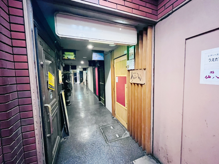 営業している店舗が載っているこのボードには、まだ「鮨 仙八」の文字があります。しかし、これだけだと分からないのでお店のある地下へいきましょう。