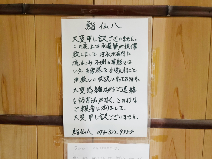 5月に店内の水道管が損傷し、お店を営業できなくなったそうです。現在は新店舗の準備中とのこと。