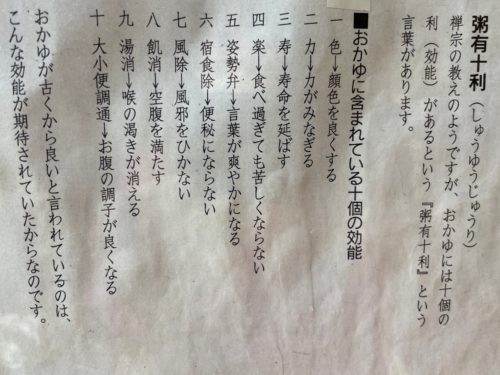 「粥有十利」といい、お粥には十もの効能があると言われているのだとか。