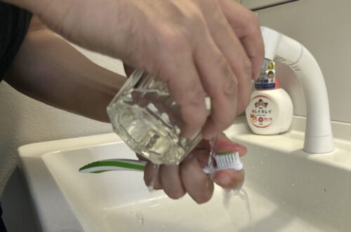 更に残った水でハミガキを洗います。