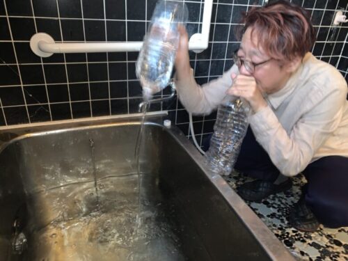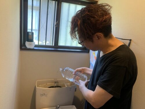 ペットボトル片手に流すの、めちゃムズい!節約しても3.5リットルくらい使ったなぁ。
