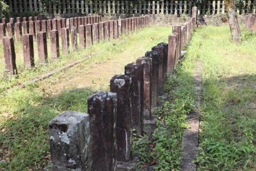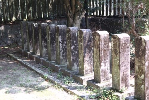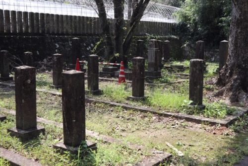 この七本官軍墓地には植木、滴水及び木留などで戦死した東京、大阪、名古屋、広島、熊本鎮台の兵士300名余りが埋葬されています。階級などによって墓石の大きさに違いがあるようです。(鎮台とは地方を守るために駐在する軍隊のこと)