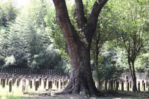 大きな木が墓石を見守っているようでした。実際にはこの木の下に遺体が埋められたといわれています。
