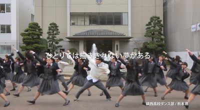 セブンや企業だけでなく、「鎮西高校」のダンス部の皆さんが、華麗なダンスを披露!制服ダンスって新しくてカッコイイですね!
