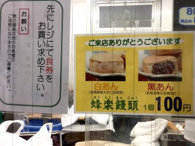 蜂楽饅頭も100円ですので、お求めやすいです。先にレジで食券を購入し、番号札を受け取ります。