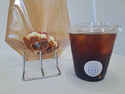 コーヒー200円といちごクリームクロッフル250円のワンコイン以下でおやつタイムを楽しめます。