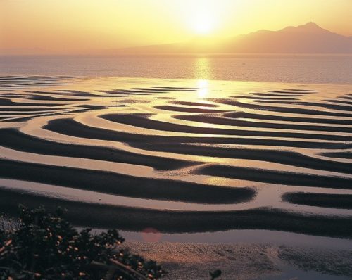 伊藤干潮と日没のタイミングが合うと、こんなに綺麗な景色が見れるんですよ!