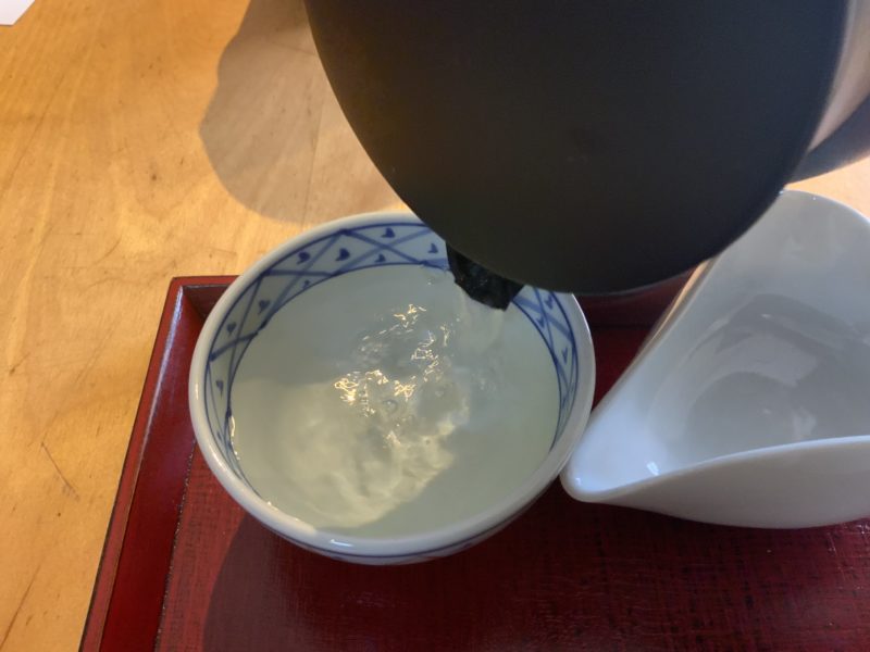 2分ほど待ち、最後の1滴まで湯呑に注ぎます。この温度と蒸らし時間は茶葉によって違うそうなので、都度教えてもらえますし、お願いしたら入れてもらえますが、この待ってる時間も気持ちが落ち着きます。