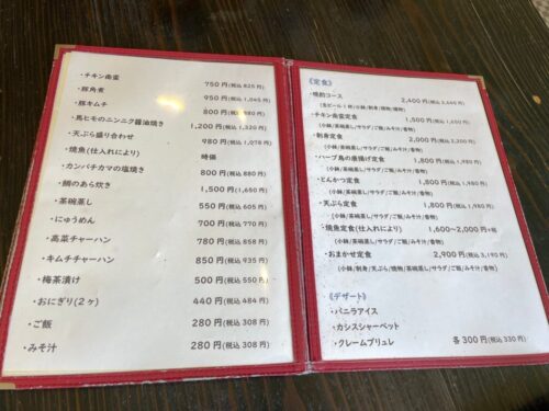 また、夜も1,500円からの定食メニューがあります。