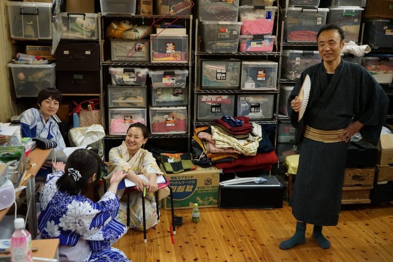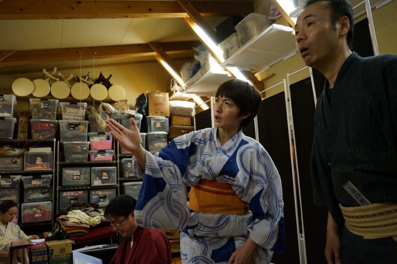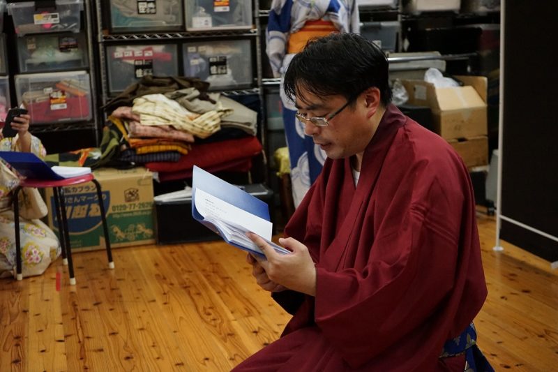 では、早速、和服に着替えて練習しましょう。指示通りに動いてみてくださいね。