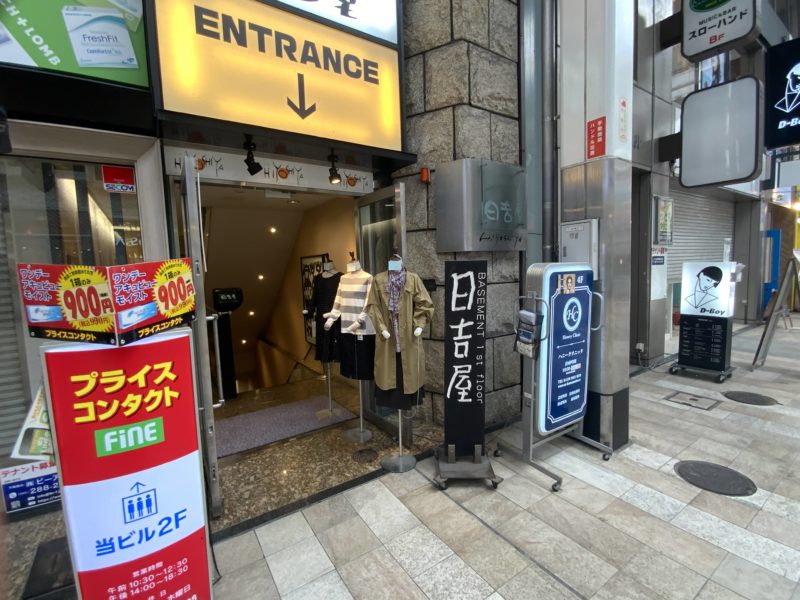 ということで、この日吉屋ビルのオーナーで、地下で洋服店を営んでいる「日吉屋」に話を聞きに突撃しました。