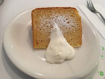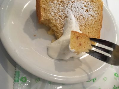 シフォンケーキの味わいは絶品!あっさりとしたクリームと相まって、これだけでもおかわりしたいくらいの美味しいデザートでした。