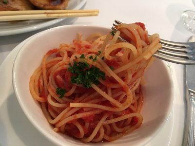 パスタはスープパスタ風でした。トマトの味わいが素晴らしく、これはなかなか家庭でも真似ができないような仕上がり!